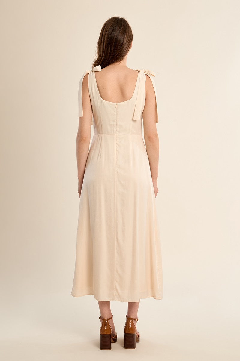 -Long tie dress, satin effect
