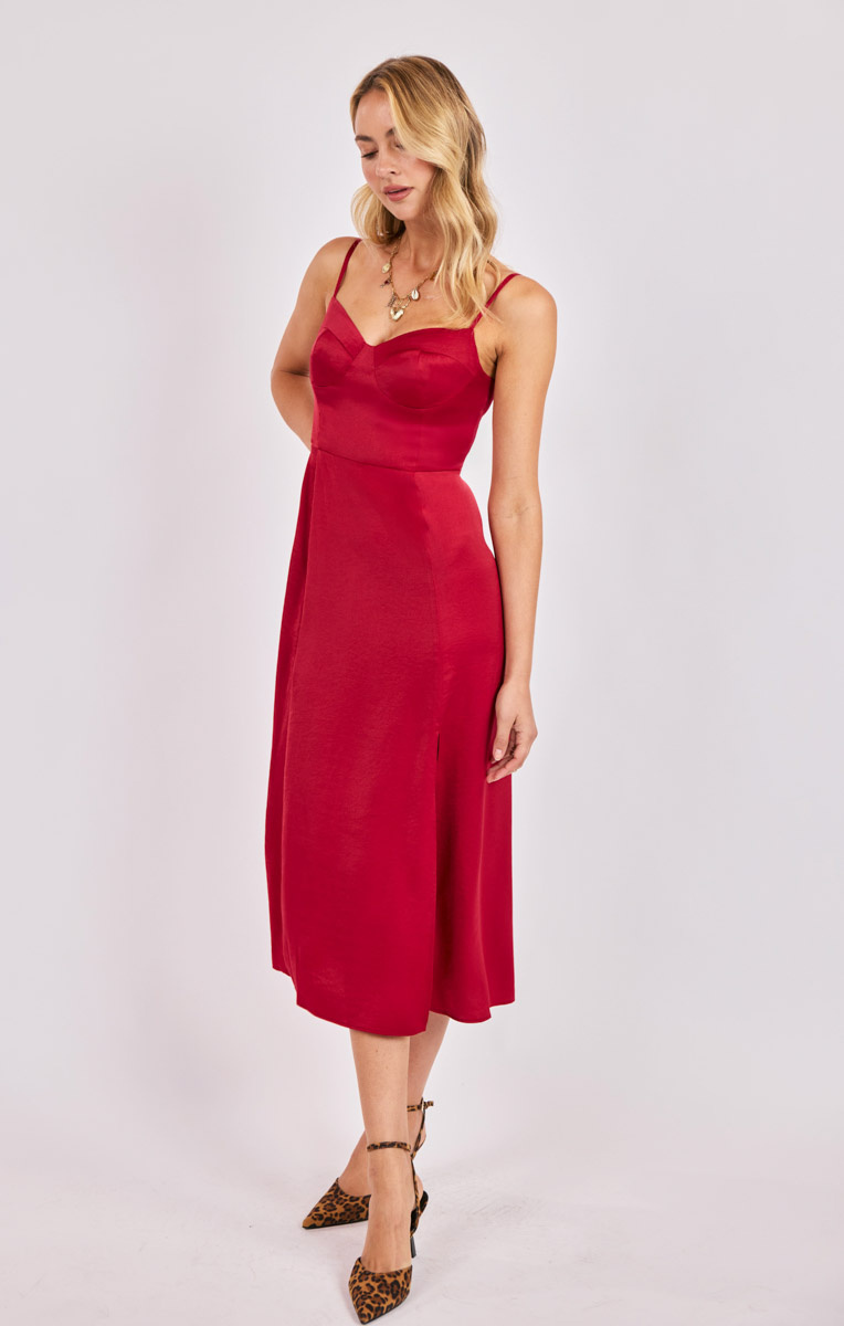 Romy Satin Bustier Bodice Midi Dress
